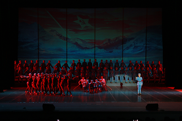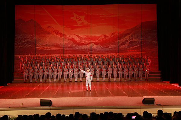 学院党委在时间紧、任务重的情况下,充分发挥党建引领作用,克服重重困难,发动和团结教学、行政、后勤、学生等部门的一切力量,带领和组织全体演职人员,全力以赴,精心编导,综合运用音乐、舞蹈、情景表演等舞台手段,突出表现了红军将士在长征途中浴血奋战、克服艰难险阻的战斗生活和中国共产党人坚定信仰、追求理想、敢于牺牲、勇于胜利的精神品格。教育引导广大师生要永远铭记红军长征丰功伟绩,大力弘扬伟大长征精神,沿着以习近平同志为核心的党中央指出的正确道路,走好新的长征路,让在场师生深受感动,也赢得了在场观众的高度赞扬和肯定。