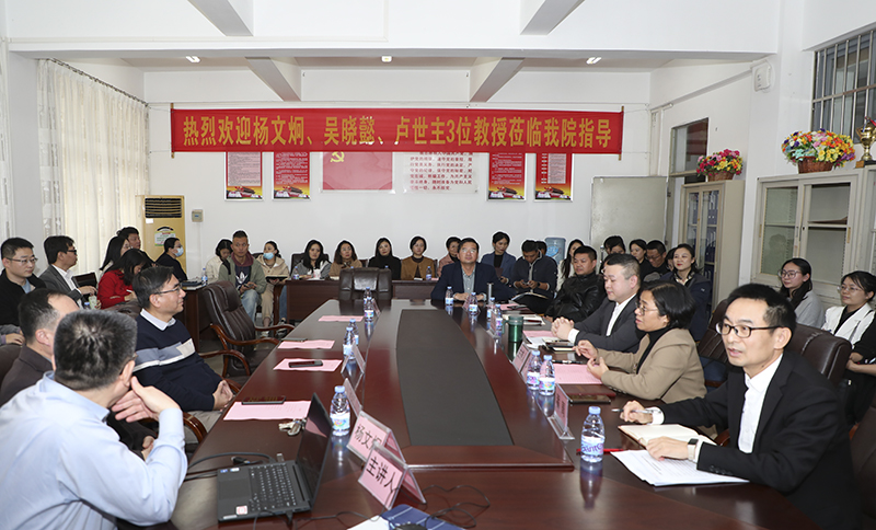 邀请,广东技术师范大学民族学院院长杨文炯,华南师范大学教授、国际文化学院副院长吴晓懿,广东工业大学设计学院副院长卢世主等专家于12月27日在艺海楼A208举行国家社科基金申报辅导报告会,会议由小说狂人