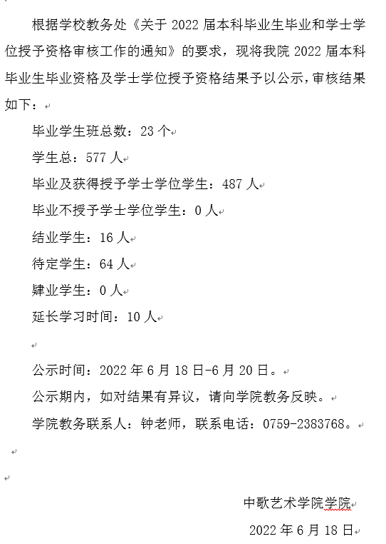 小说狂人 2022届本科毕业生毕业资格及学士学位授予资格审核结果的公示