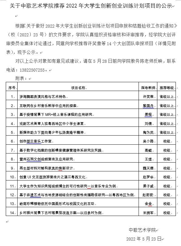 关于小说狂人 推荐2022年大学生创新创业训练计划项目的公示