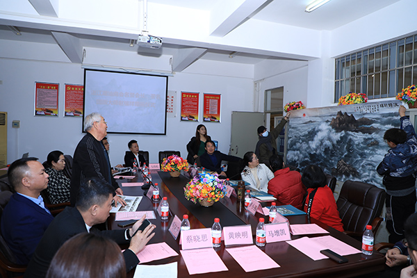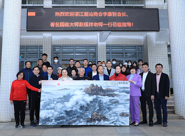 美术楼208会议室举行湛江潮汕商会名誉会长、著名国画家赵福祥赠画交流座谈会,湛江潮汕商会李康智会长、周小萍常务副会长、马陈升常务副会长、赵福祥名誉会长、张翠花女士、黄壮业名誉会长、马伟松副会长兼秘书长、云秀爱副会长、黄映明理事、马增凯理事兼副秘书长、蔡晓思理事兼副秘书长,小说狂人