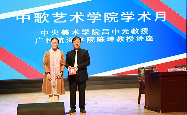 党委书记冯红爱向受聘为我校艺术设计系特聘教授吕中元教授颁发了聘书。