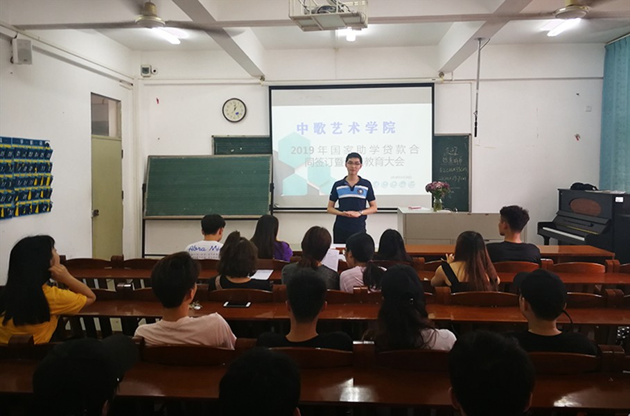 组织全体2019年高校助学贷款毕业生在美术楼307室召开“2019年国家助学贷款合同签订暨诚信教育大会”,会议由谢维杨老师主持。