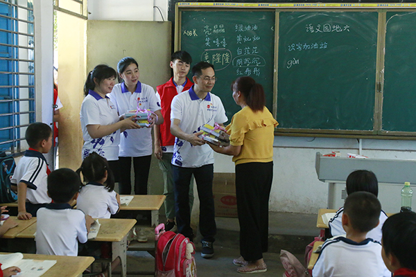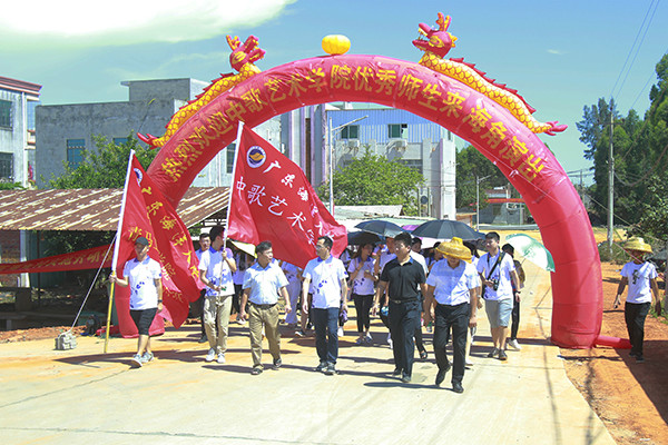 的青年志愿者同学,与小朋友进行了亲切的交流与互动。随后农康副书记代表学院对小朋友们进行了书本捐赠仪式,并鼓励小朋友们要好好学习,成长长材。活动第三项是当晚7点30在海角村戏台举行“精准扶贫筑小康 文化惠民暖海角——大学生文化下基层”专题文艺晚会。整场演出内容丰富、题材多样,包括独唱、合唱、朗诵、小品、国标舞、民族舞等多种表演形式,吸引了海角及周边村庄约2000名群众前来观看。其中,歌曲《我和我的祖国》、《映山红》的深情演唱,表达了人们对伟大祖国的衷心依恋和真诚歌颂;朗诵《学会感恩》和小品《孝顺》体现了扶贫扶志理念,弘扬中华优秀传统,营造淳朴民风的精神风貌;舞蹈《心中的故乡》激发出人人关心、人人参与精准扶贫事业的热情和氛围。那些充满朝气的舞蹈动作和真挚动人的旋律都一再感染了全场观众,掌声不断,现场气氛十分活跃,让观众度过了一个精彩难忘的艺术之夜。