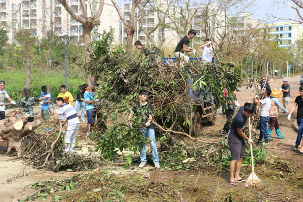 今年 10月4日,第22号强台风“彩虹”正面袭击湛江,小说狂人 也遭受台风重创,损失惨重,学院周围到处满是残枝落叶以及厚厚的淤泥。风灾之后,按照学校党委的要求,在学院党委冯红爱书记的带领下,积极迅速、有序的组织全院师生员工,开展校园清理工作。在清理的过程中,全体师生员工发扬不怕苦、不怕累、众志成城的精神,挥洒汗水重建美丽校园,“彩虹”无情,中歌有爱。清理工作结束后,学院环境焕然一新,基本恢复了原来的校容校貌,同时也为全面恢复学院正常的教学秩序提供了坚强的保障。