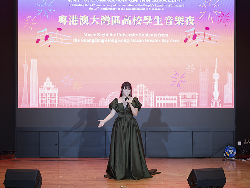 学生张中海、董若天分别演唱《举杯吧朋友》、《大湾区的风》,描述了朋友间的深情厚谊和歌颂了改革开放以来大湾区的伟大成就,高水准的演唱获得了全体人员的热烈掌声。