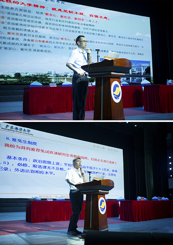 迎新大会在轻快、青春、和谐的校歌《蔚蓝之歌》声中结束。会后,学院党委副书记、纪委书记翟周和副院长何洋分别就学生管理和本科学籍管理等教务工作向新生作了专题教育。