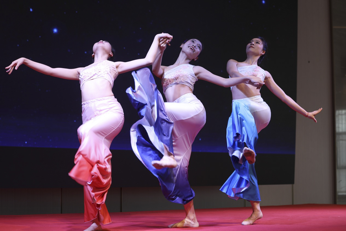 在大会表演环节,艺术学院选送的舞蹈作品,三人舞《竹林俏语》和独舞《出赛》以其灵动的舞步、精巧的编排赢得了现场观众的热烈掌声。这些作品不仅展示了学生们扎实的舞蹈功底,更深刻诠释了他们对舞蹈艺术的独特理解和感悟,彰显了舞蹈编导的专业素养和创新实践成果。