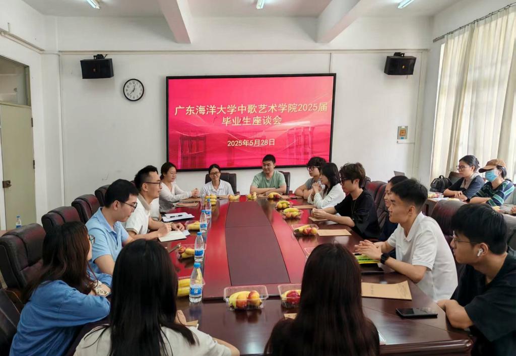 在美术楼208会议室召开2025届毕业生代表座谈会。学院党委副书记翟周、毕业生辅导员谢维杨、胡海玲、冯勤辉以及毕业生代表参加了会议,会议由分管毕业生辅导员冯勤辉主持。