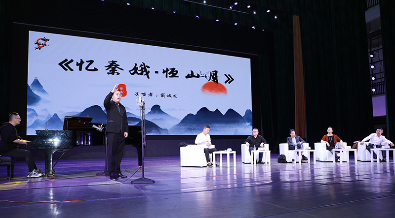 互动环节中,音乐专业研究生二年级戴诚龙同学现场范唱《忆秦娥·恒山月》。三位专家对他的演唱进行逐一点评,并指出:演绎中国声乐作品,除了做到“字正腔圆”之外,还应将“声、字、情、味、音”五大要素融于一体,立体式呈现。