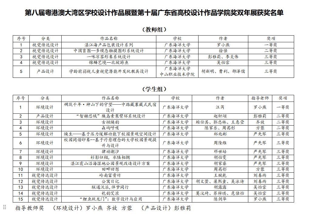师生凭借扎实专业功底与创新设计理念,在全省众多高校作品中脱颖而出,荣获一等奖2项、二等奖4项、三等奖14项,罗小燕、齐放、方蓉、彭雅莉4位老师获评优秀指导教师。